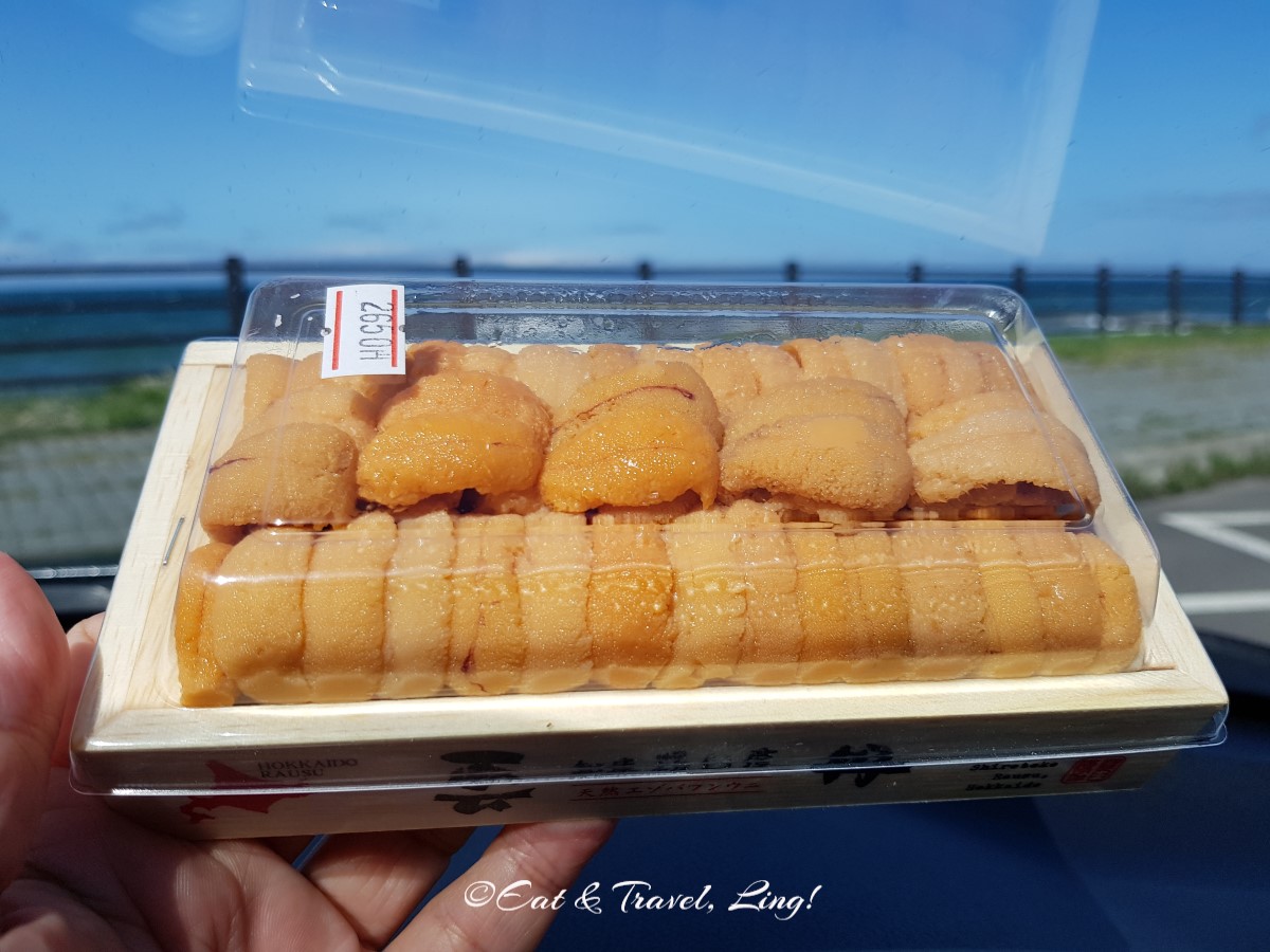 The next day, I bought a tray of Uni (JPY2,650) from one of the seafood stalls on the 1st floor of Rausu Roadside Rest Area. The stall keeper was very generous with his sample tastings, and helped slice open the Kegani (Horsehair Crab JPY1,000) I bought, making it easier to extract the meat.