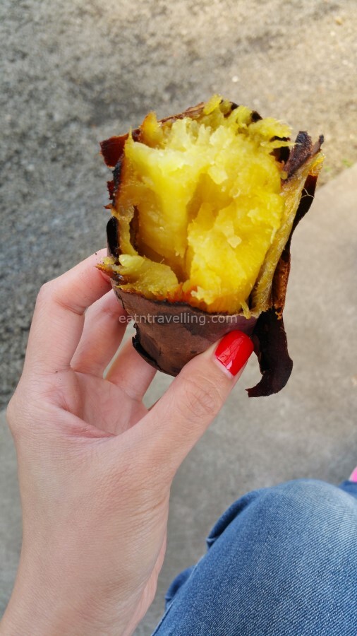 We decided to stop for a break and bought a baked sweet potato to share. The baked sweet potato was one of the best we ever had; it was like honey candy. There were chickens and ducks around the farm, and we fed the ducks with the sweet potato skin. (I wonder why we didn’t buy any mikans to try then? 🤔)