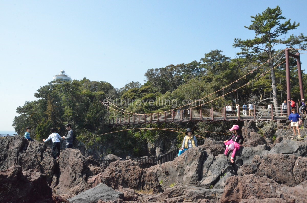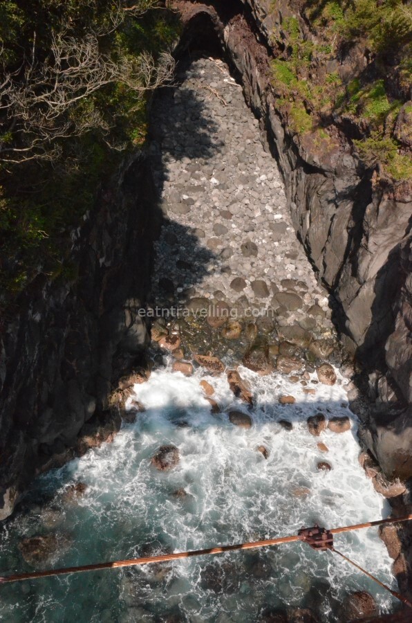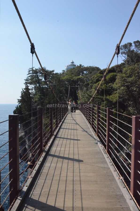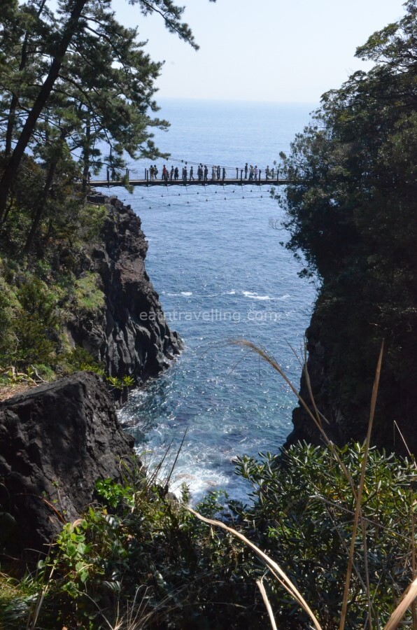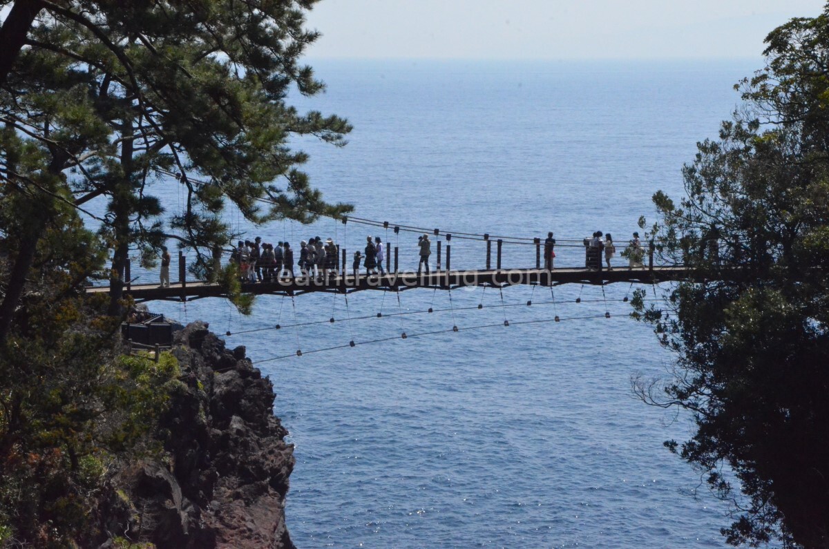 Kadowaki Suspension Bridge is a popular spot at Jogasaki Coast. There were many people crowding around Kadowaki Suspension Bridge for photos.