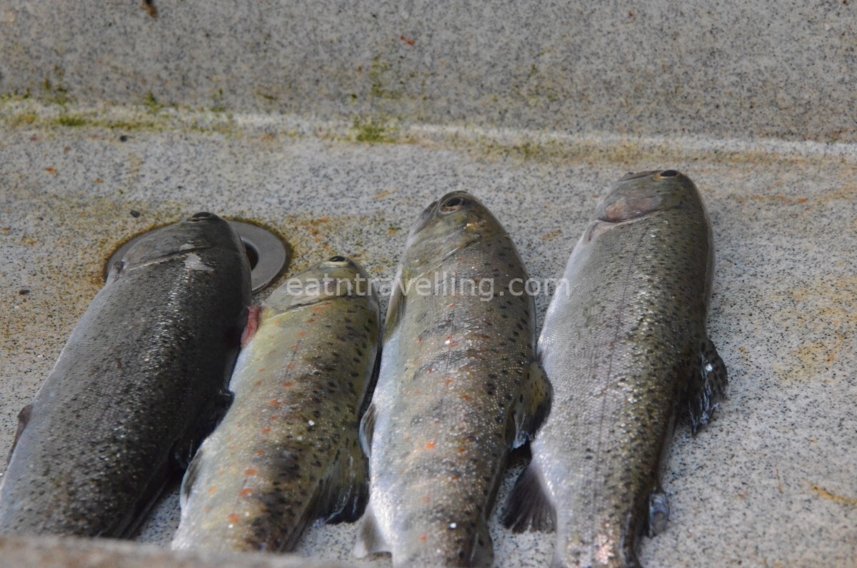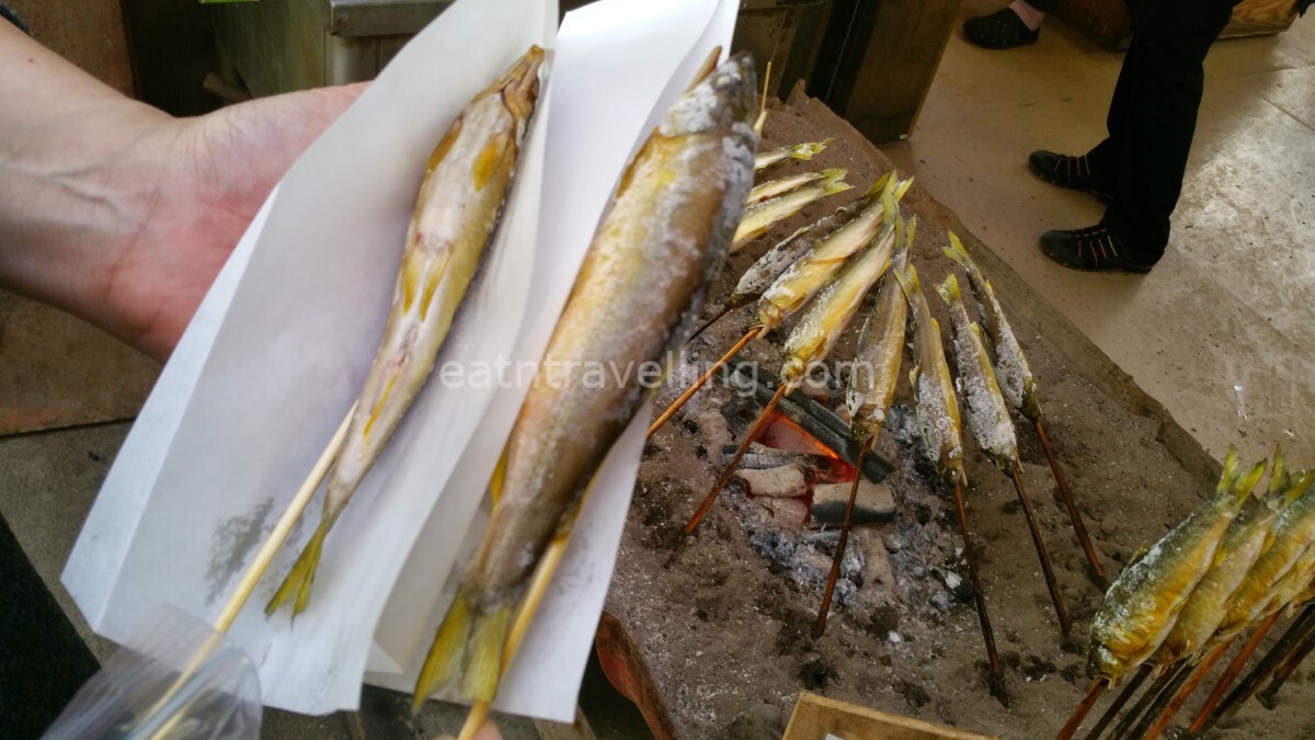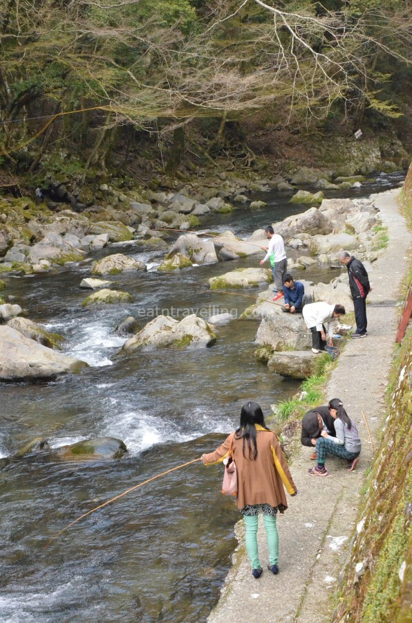 There were many people fishing trout downstream from Joren Falls. Visitors could rent a rod from the fish store and catch their own trouts. We took the easy way out and bought 2 salted grill trout for a snack; they were very tasty and we ate up the whole trout.