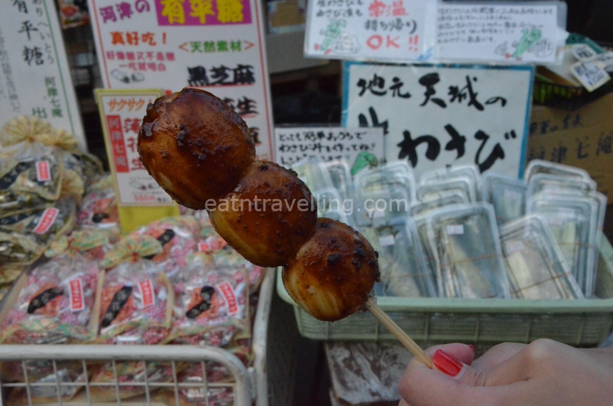The waters at Kawazu Seven Falls were so clear. We would probably have jumped in to cool down if it was summer. We picked up a grilled miso dango snack from a little souvenir shop near the falls. After spending a short time at Kawazu Seven Falls, we decided to head towards our lodging for the night.