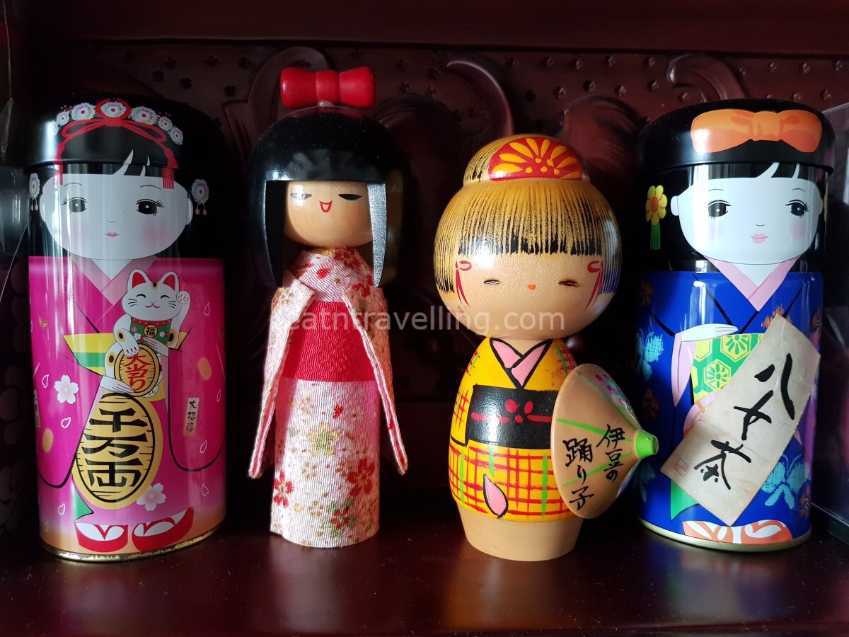 The area around Joren Falls was also famous for Wasabi. We had thought of buying the Wasabi but decided not to as we weren’t able to keep Wasabi in a cool environment during the trip. Wasabi plant is quite fragile and would spoil easily if not handled correctly. I bought a pretty Ito Kokeshi (the yellow Japanese Wooden Doll in the photo below) for my Mum. It is sitting prettily on the mantle at home with other Japanese Dolls that I’d bought over the years for her.