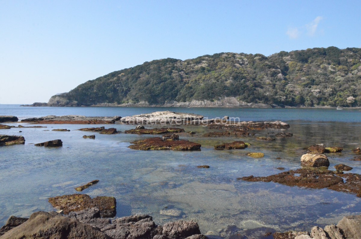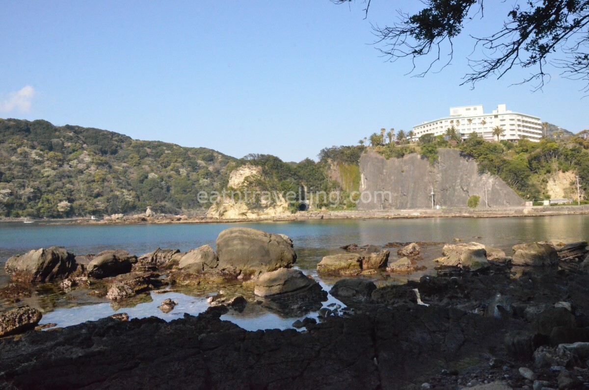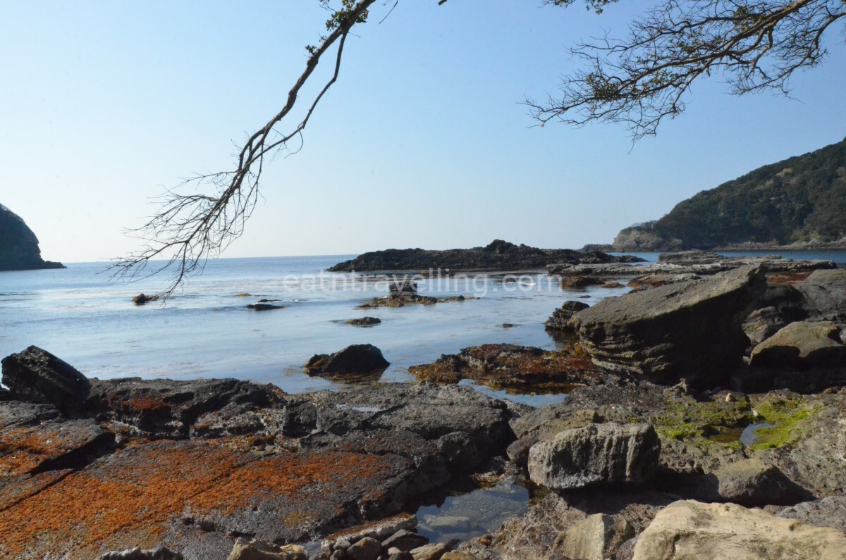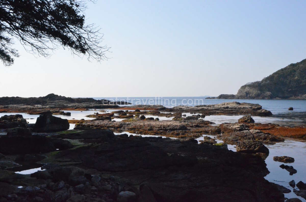 Our aim for the day was to eat Izu Peninsula seafood, visit a number of places of interest on the southern part of Izu Peninsula before swinging over to the west. After a breakfast of Nissin Chilli Tomato Cup Noodles, we checked out of Shimoda Tokyo Hotel. We decided to stop at the rocky beach on the way to Mount Nesugata. The sun was bright and the sea shimmered with many shinning diamond lights. It was quite refreshing starting our day with fresh air and nature.