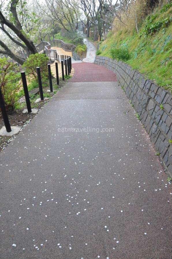 It was drizzling a little at Koibito Misaki when we got there. However, we didn’t let that dampen our mood. SY gamely posed at the Lover’s Cape booth for a photo souvenir to remember our visit. The stroll along Sakura covered path was lovely. Do take note the many stairs along the boardwalk towards the tip of Lovers’ Cape.