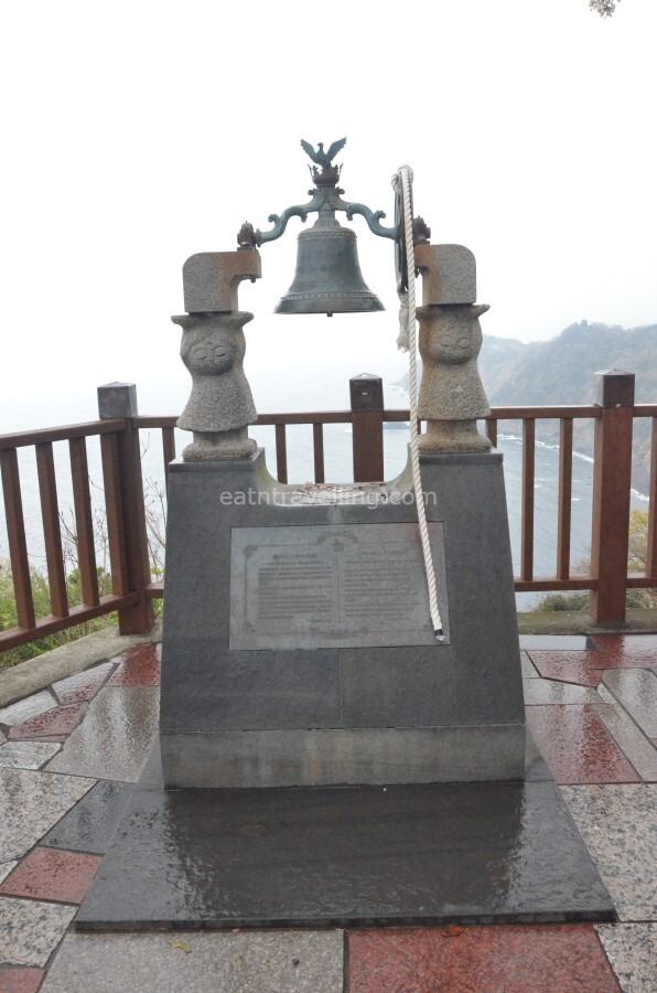 Midway towards the tip of Lover’s Cape, stood a monument where one could view Mount Fuji through the hole on a clear day. All we could saw was a foggy scene instead. Next to the monument was the Love Call Bell. According to legend, if you rang the bell 3 times and call out your significant other’s (SO) name, you would have a successful relationship. SY and I didn’t ring the Love Call Bell since both of us were single and didn’t have any SO. We continued on to the tip of Koibito Misaki (Lover’s Cape).