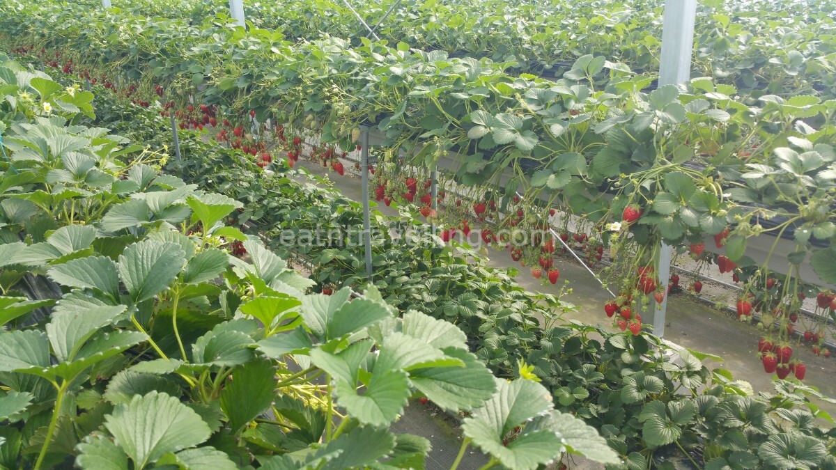 Shizuoka prefecture is one of the top producers of strawberries in Japan, with many farms where visitors could pick and eat strawberries during strawberry season (Dec-May). We decided to stop by a strawberry farm and initially thought to go strawberry picking. When we got to Izu Fruite Park, we decided to just take a peek inside and asked for permission to take photos instead.