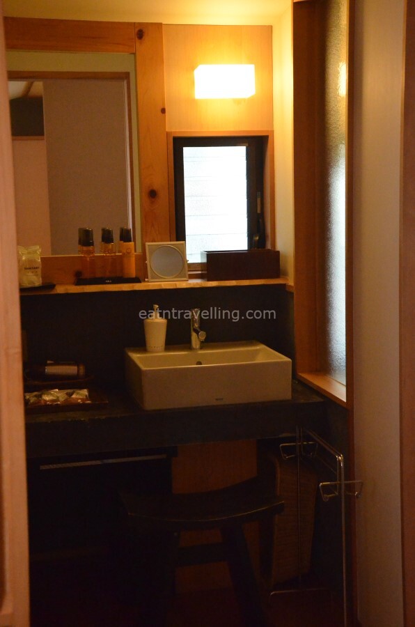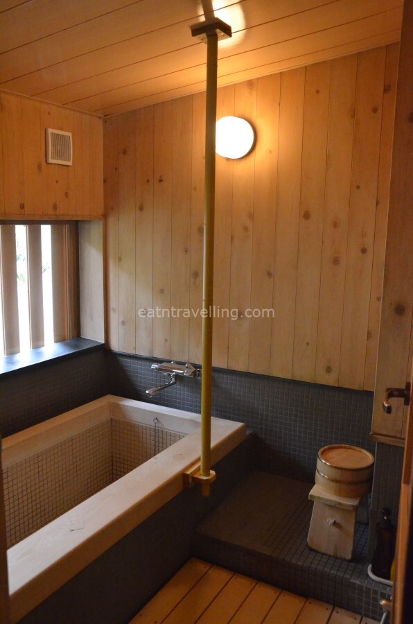 I liked that our room’s attached toilet and bath areas were all separated, including the sink area. That allowed SY and I to use any of them without having to wait for each other. We like the bathroom as it had a cypress bathtub and pine panels which gave a nice spa smell. SY enjoyed soaking in the cypress bathtub.