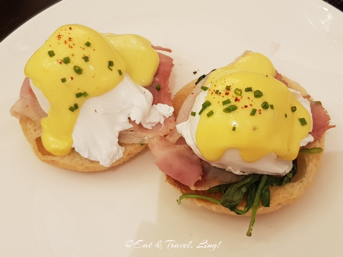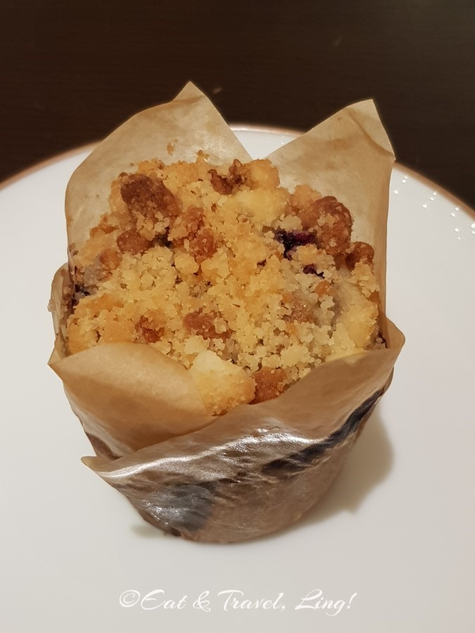 We were presented with a breadbasket and started with fruit juices, coffee and tea. We ordered Egg Benedicts with Smoked Salmon and Ham, Dimsum, a Cheese Platter and small portion of Chicken Porridge for my Mum. I had a Blueberry Muffin that came with the breadbasket and it was moist and delicious. We couldn’t eat anymore as the previous night’s dinner was still loitering around in our tummies.
