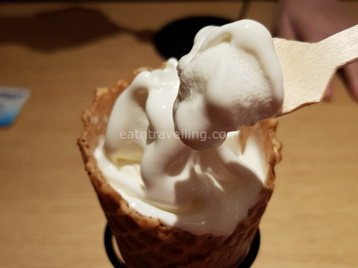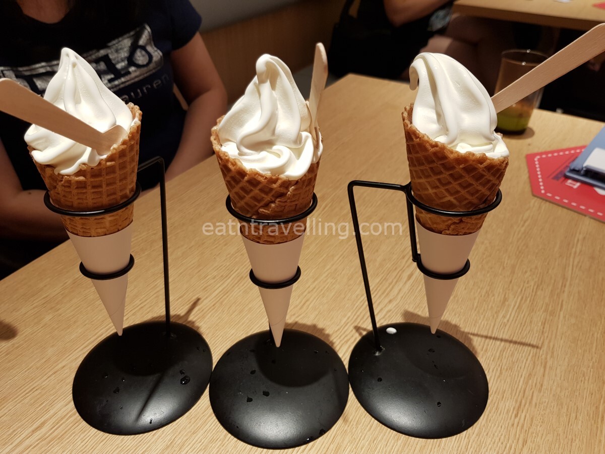 We ordered the Hokkaido Milk Soft Serve Ice Cream after we finished our meal. The Ice Cream cones were served individually in a stand and were a little melty when it got to us. That was why I didn’t have time to place the cones for a better photo!