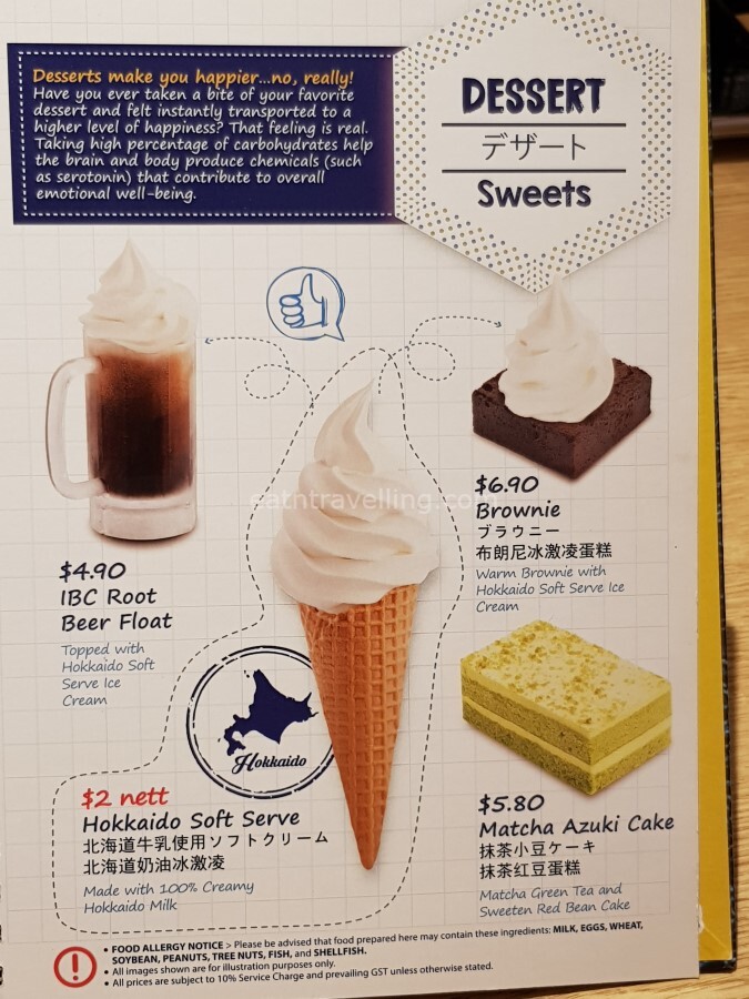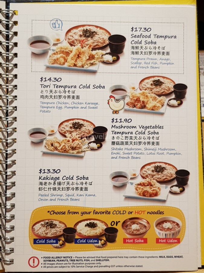 We spent a total of $68.38 for 1 Seafood Tendon, 1 Seafood Tempura with Cold Soba Set, 1 Mushroom Vegetables Tempura with Cold Soba Set, 1 Ikageso (Fried Squid Legs), 3 Green Tea, 3 Hokkaido Soft Serve Ice Cream. The Hokkaido Milk Soft Serve Ice Cream was shown as $1.70 (before the service charge and GST) on the bill as we ate in. Overall, not a bad price for the amount and quality of food we had. We were all very full from the meal.