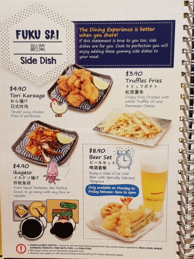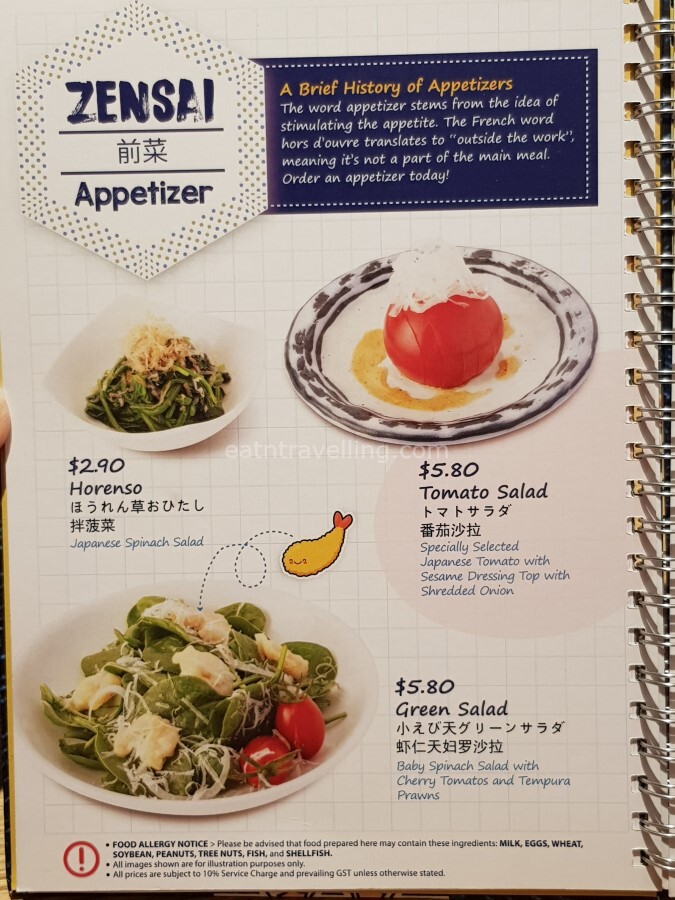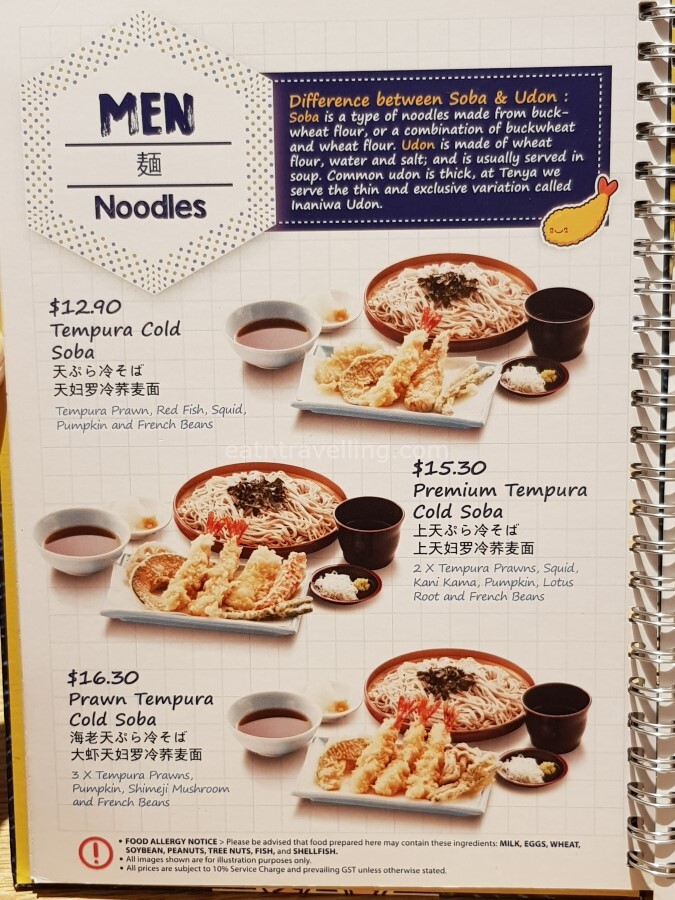 Looking further at the menu, I noticed it was only the 2 cheapest Noodle sets that were S$4.00 difference from their respective Tendons, while the rest was S$4.40 difference. I am guessing it was just a pricing strategy and nothing to do with the portion and items that were in the Noodle set.
