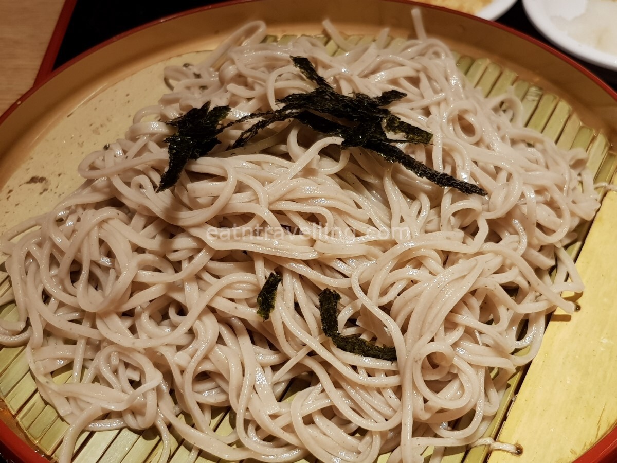 KT went for the Seafood Tempura Cold Soba set (S$17.30) instead of the Seafood Tendon (S$12.90). We couldn’t figure out why the difference for her set was S$4.40. If she had ordered a Seafood Tendon and added on the Cold Soba, it would have only cost S$16.90. Though there would not be any Tempura dipping sauce, she would have the Miso Soup and rice which came with the Seafood Tendon. 🤔