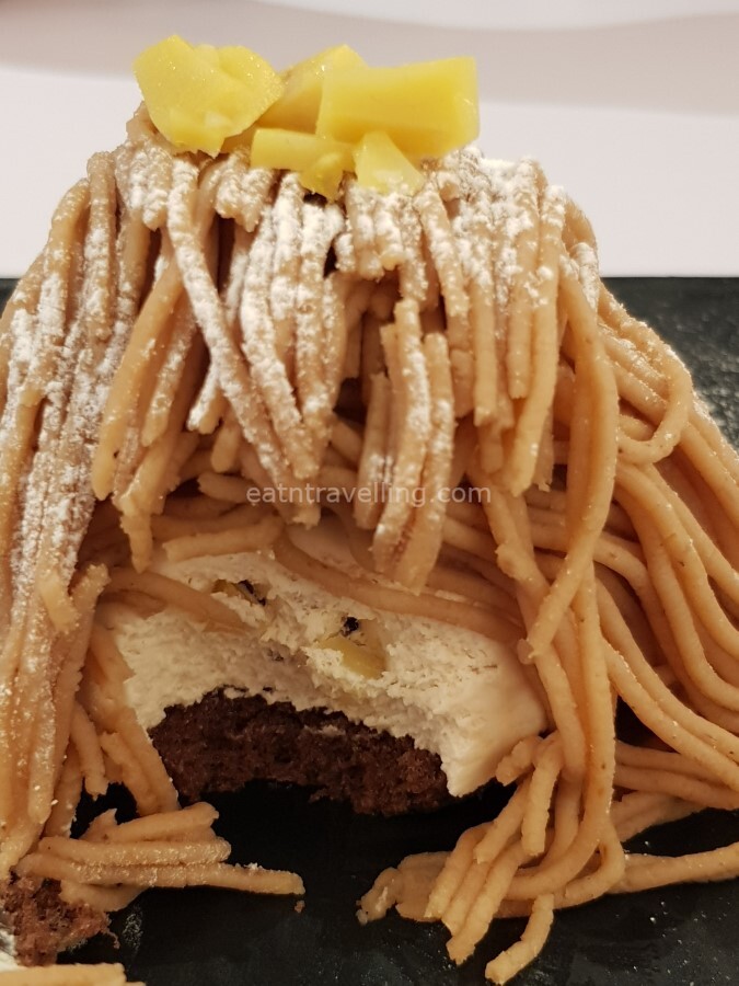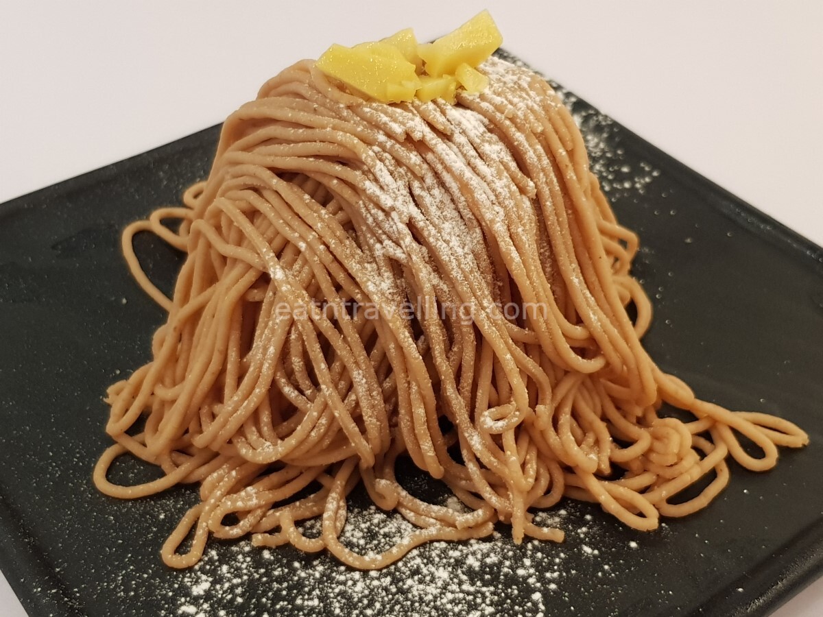 There were 2 choices for the Mont Blanc base – Chestnut or Cheese. I decided for the full Chestnut flavours, best to get the Chestnut base. Pardon the last photo that looked a little messy as wanted to show the whole Chestnut that was hidden under the Kuri (Chestnut) paste. Was pleasantly surprised to find that.