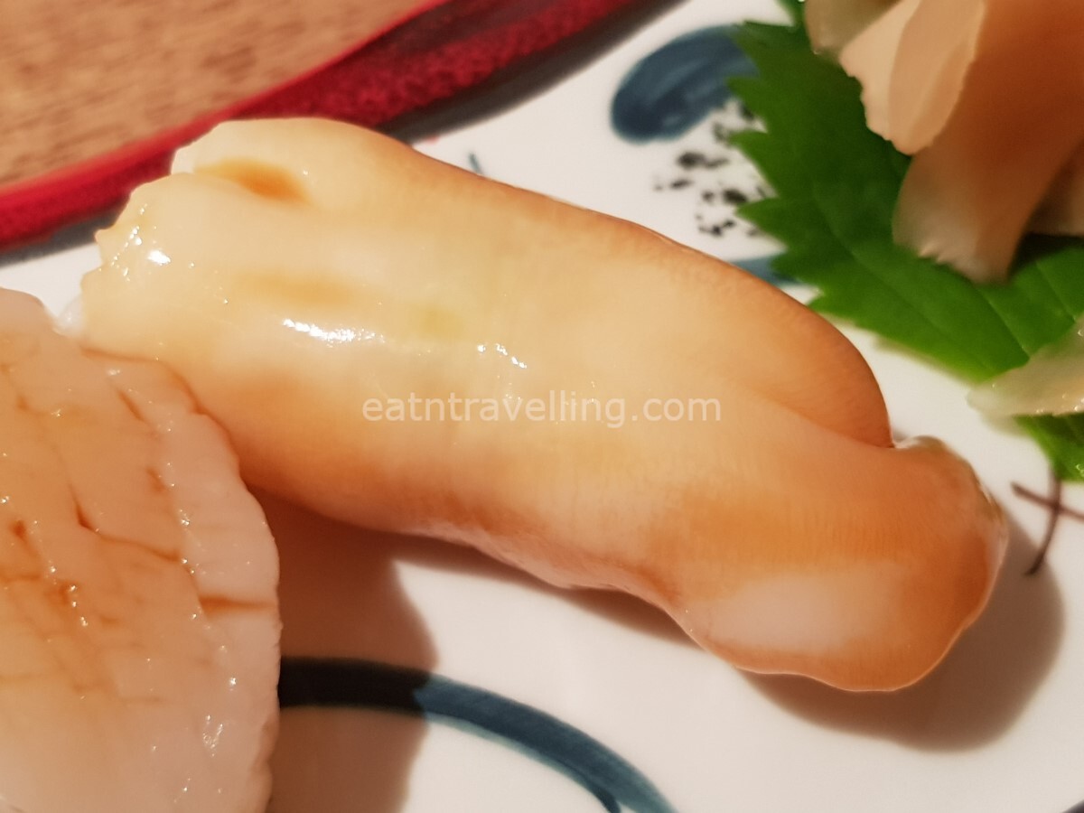 The Scallop sushi seemed to be from a big piece of scallop cut into 2 as SY’s scallop sushi and mine had that straight cut. The soya sauce couldn’t bring out any sweetness in the scallop. As for the Stone Clam, it had a nice crunch but somehow there was a bit of blood taste. Not my favourites.