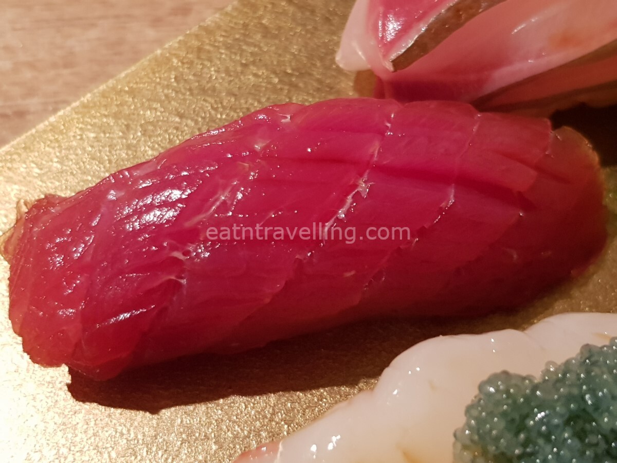 I always like to taste the Uni on its own before I eat the whole Uni Gunkan. The Bafun Uni was sweet and creamy, no funny smell or taste – very satisfying. Next up was the Ootoro sushi which was soft, fatty, oily and yummy. However, there was a small string of tendon at the back that wasn’t removed. It would have been a perfect piece otherwise.