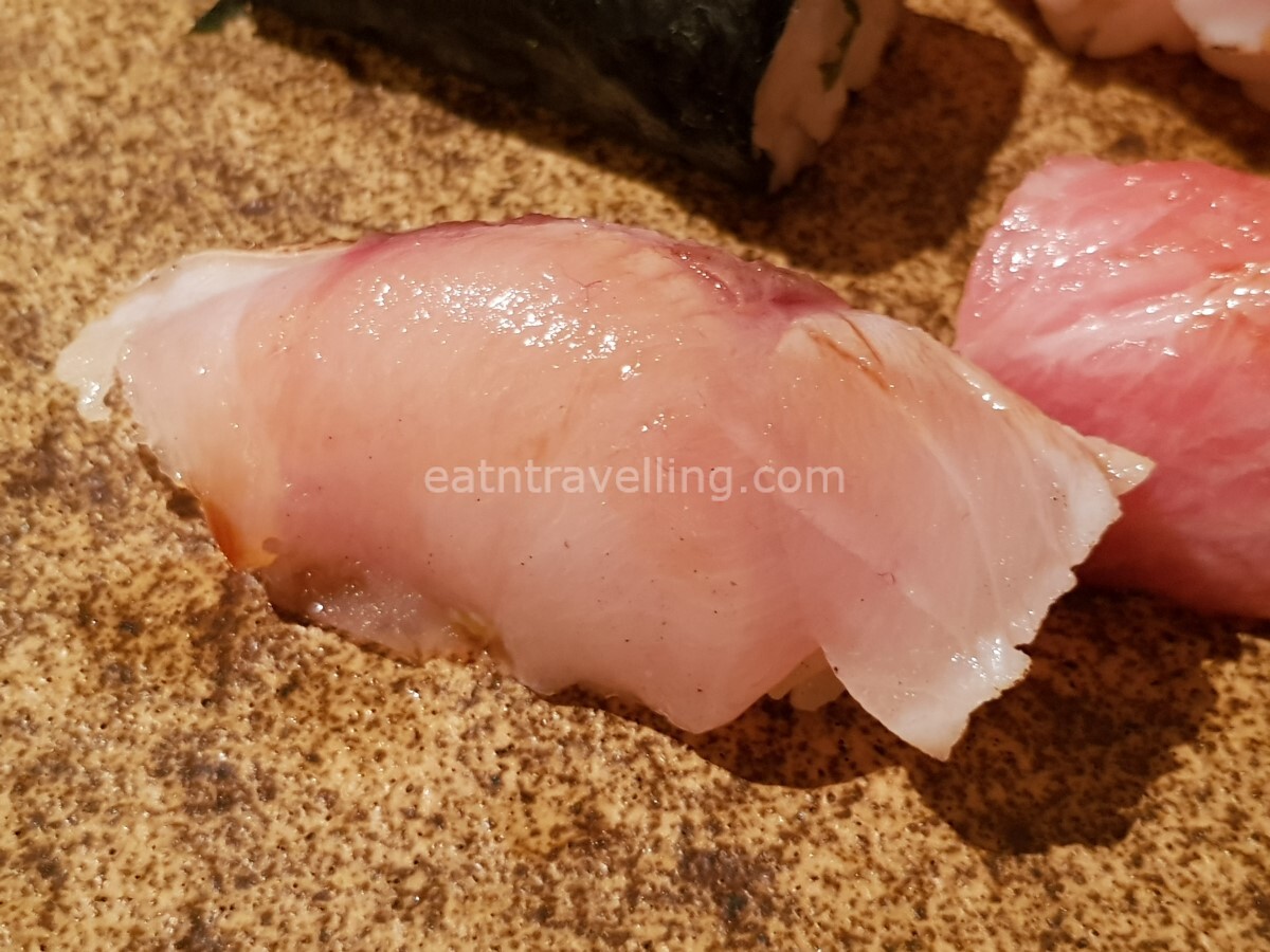 The Nodoguro was delicious as the light aburi (flame grill) brought out the sweet fats, totally no complaints about it. 😋 I remembered how good the Kinmedai was during my trip with SY to Izu Peninsula, so decided to keep that last. What a fantastic piece of fish – sweet with a nice aburi (flame grilled) flavour. Yum Yum! 😋
